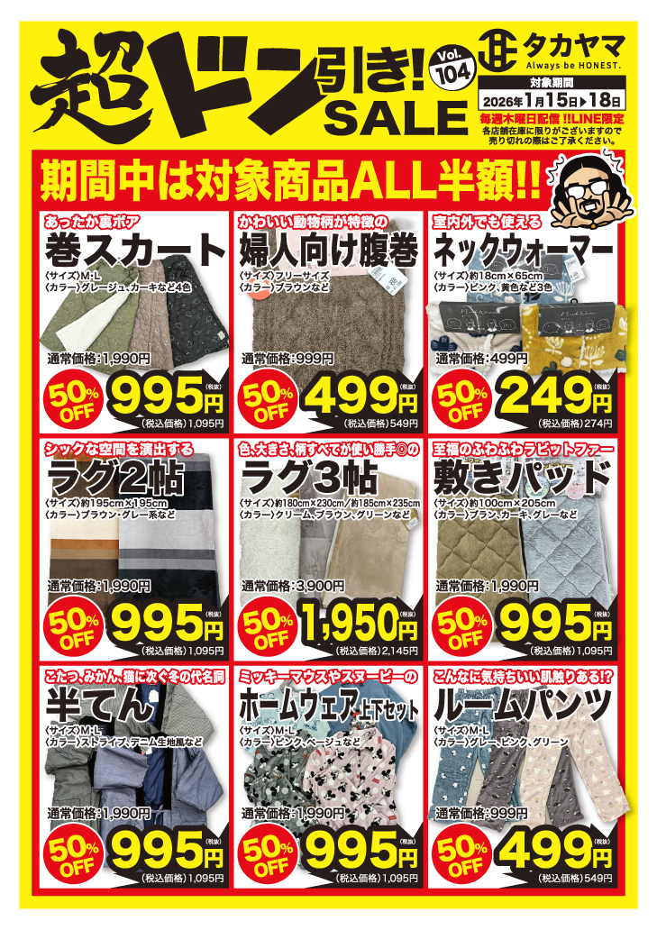 冬の快適グッズクリアランスセール【超ドン引きSALE!Vol.104】